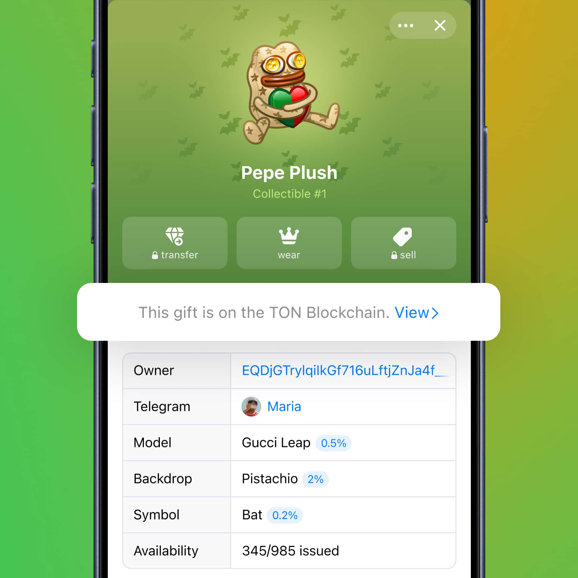 Карыстальнікі могуць перанесці свае падарункі на блокчэйн для максімальнай бяспекі. Пачынаючы з сённяшняга дня, калі вы падключыце свой уліковы запіс да Fragment, вы можаце паказваць свае падарункі на блакчэйне ў сваім профілі Telegram.