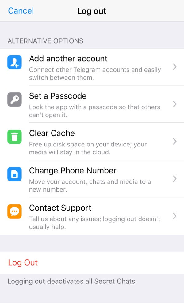 New users often bring their logout habits from other apps and don't realize that this is rarely necessary on Telegram. To help them find their way around the app, the logout menu now shows several alternative options to logging out: