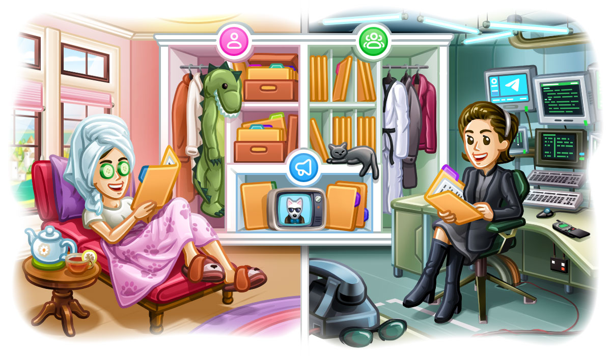 Like everything on Telegram (except for Secret Chats), your Chat Folders will seamlessly sync to all your other connected apps, including our Desktop Apps.