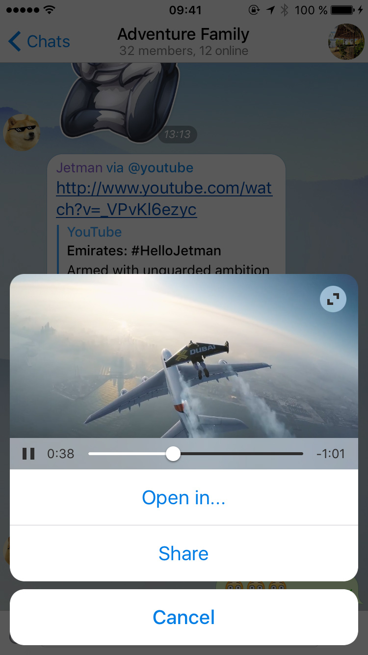 Starting today, our iOS users can easily share photos and videos to other Telegram chats with a comment, or send them to other apps.