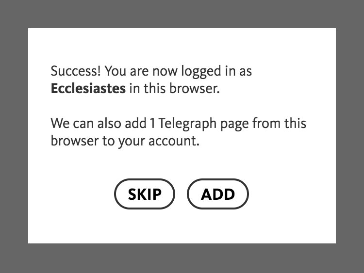 Simply press the Log in on this device button, and all posts you‘ve previously written in that device’s browser will be added to your Telegraph account.